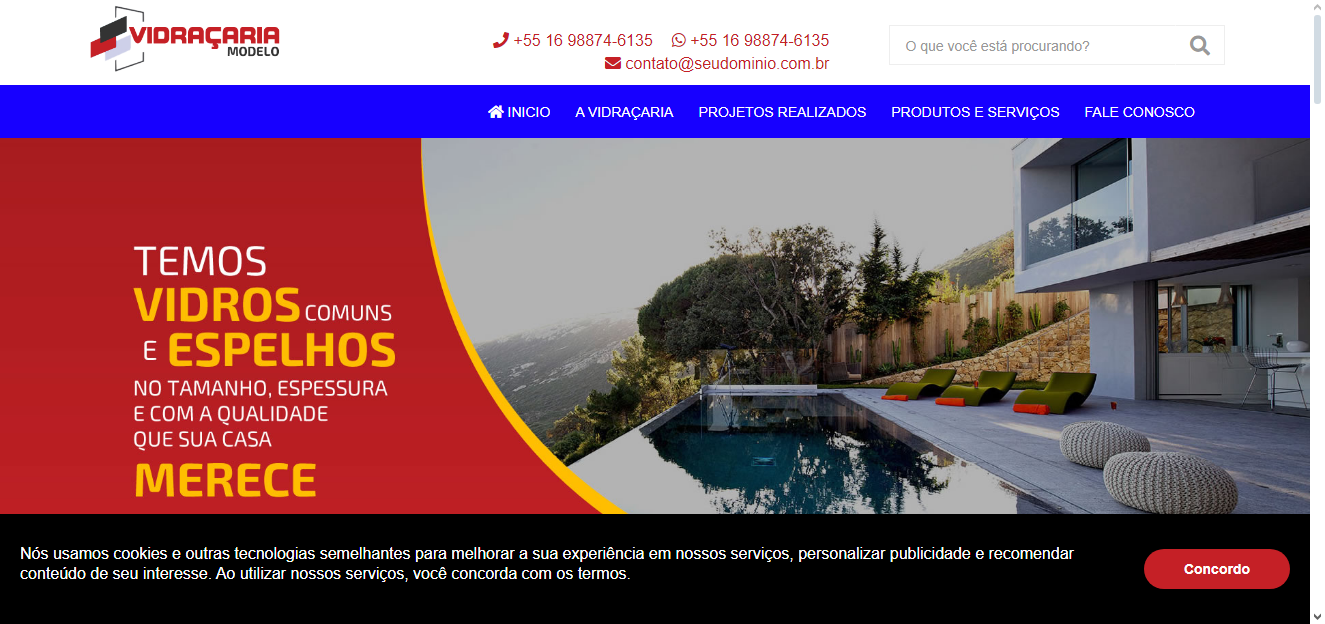 Site para Vidraçaria 100% responsivo em PHP MySQL com Painel Administrador, fácil edição pelo painel, feito em PHP 7.4 MySQL, utilizando os Framework Bootstrap v3.3.7 e Font Awesome 5.7.0 para agiliza maior performance de navegação.